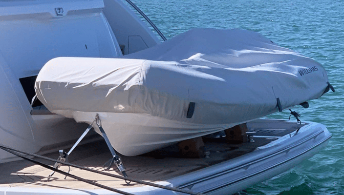 Tie down kits manufactured using 316 stainless steel ratchets and 35mm polyester webbing, suitable for tenders up to 1450kg