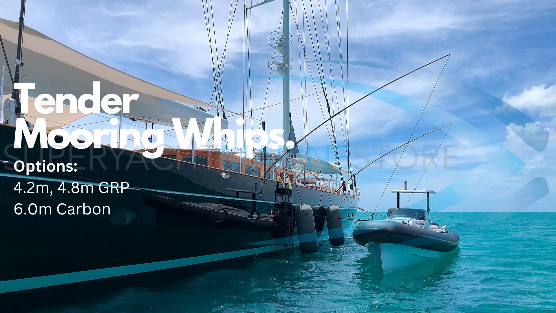 Yacht mounted tender mooring whips - pull and hold your tender away from the hull, transom or swim platform which will create a safety zone and protect it from damage.