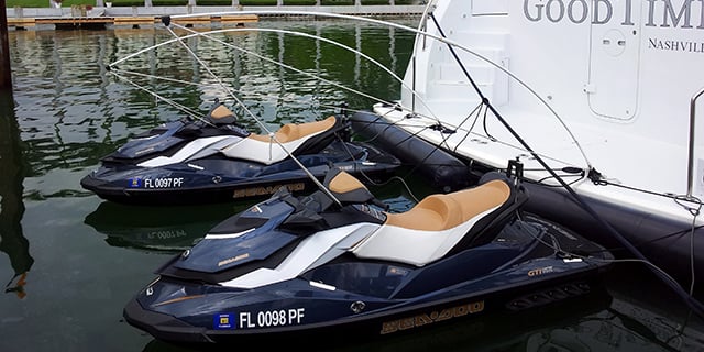 Stainless flush mounts cam be installed on swim platforms, deck or rub rails depending on the preferred location of the tender/PWC.
